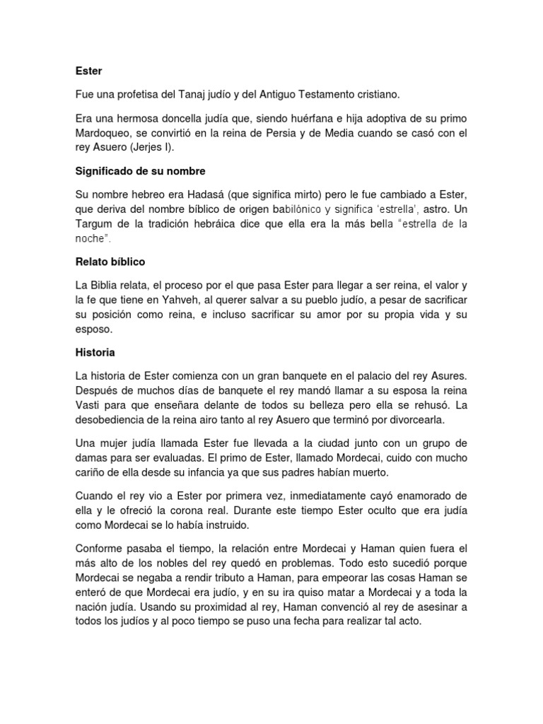 Significado de esther en la biblia. Este nome é costumeiramente atrelado às interpretações que estão relacionadas aos sentidos de estrela e a que brilha trazendo assim uma noção de magnitude virtude que torna alguém naturalmente carismático e bem quisto pelos próximos. Una vida de sumisión Mujeres de la Biblia. Ya que el significado de su nombre se relaciona con mujer estrella es una persona que está preparada para el éxito y para alcanzar las más grandes alturas tal como las estrellas en el.
