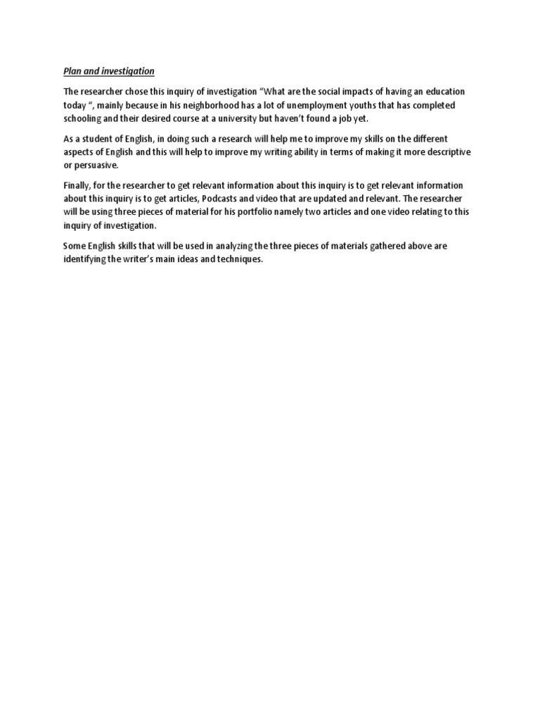 Cxc English Sba Plan Of Investigation